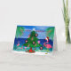 Christmas flamingos trim a tree Holiday greeting cards of my coastal beach art. 5 x 7 Santa flamingos trim a Christmas tree beach Holiday greeting cards with my art.