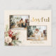 Christmas Floral Gold Joyful Text 2-Photo Holiday Postcard
