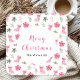 Christmas Floral Pink Ice Skates Merry Christmas Square Paper Coaster