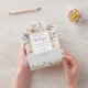 This elegant floral wedding all in one invitation is designed with an easy to tear off perforated RSVP postcard with a QR code. Simply fold the card, seal and send (no envelope needed).