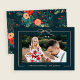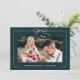 Christmas Floral Teal Blush Bow Framed Photo Holiday Card