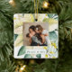 Christmas Winter Flowers Peace And Joy Holiday Personalized Photo tree ornaments from Ricaso - easy to personalize with your own details - add your own text and photo to this stunning botanical winter foliage green, yellow and white modern themed ornament with a typography detail to the front and your own photo - perfect for yourself or as a wonderful holiday keepsake for friends and family - ideal to remember your first Christmas together