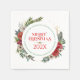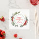 Colorful Christmas flowers wreath with Merry Christmas-typography in red. Customizable text will make this holiday napkin design uniquely yours.