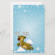 A cute cartoon image of an adorable christmas reindeer flying up in the sky with snowflakes and clouds in the background.