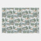 This Christmas woodland wrapping paper set of 3 sheets features coordinating holiday patterns: Cabins in snow-covered forest, plaid, and forest blue with snowflakes.
