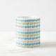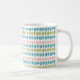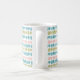 This mug has a mid-century modern Christmas design of four lines and a Christmas tree in pink, green, and turquoise repeating across the design. Like the design but want different colors? Message me.