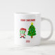 Here you can admire one of Christmas drawings, I call, "Christmas FrankenCheese," FrankenCheese dressed up as Santa, with a decorated Christmas tree, text says, "Merry Christmas." You can now order, "Christmas FrankenCheese," on this Jumbo mug to wish someone a, Merry Christmas."