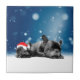 Christmas French Bulldog Puppies snow santa hat Ceramic Tile