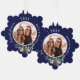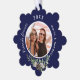 Personalize and add your own photo. A navy blue background decorated with a cone and pine greenery. Add your names and year.