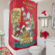 Are you looking to give your guests a chuckle in the bathroom? Picture a Christmas-themed funny cat inside a litterbox. You can envision what the adorable, unabashed kitten is up to. Personalize it with your name or the recipient's name. Change "Merry Christmas" to "Merry Cx#8#xmas" for an extra laugh. A hanging golden canvas displays a humorous quote for those entering your bathroom. The background is a vibrant Christmas red. The scene depicts a bathroom corner decked out in Christmas lights with a bathtub, sink, mirror, chair, plants, and an area rug. The cat, wearing a Santa hat and a collar of Christmas lights, sits in a litterbox adorned with a golden ribbon and colorful ornaments.
