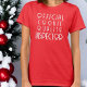 Traditional Christmas holiday red white T shirt with funny humor humorous typography script . Customizable personalizable with a name on the back if you want or you can delete the text.It looks great in other colors too.For the cheerful happy time during winter holidays and more.