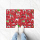 Cute German Shorthaired Pointer dogs with liver and white ticked coats sit and stand in festive holiday outfits. Santa hats, antlers, sweaters on a holiday background with scattered ornaments.