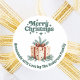 Perfect for homemade gifts. A white background, green text. Merry Christmas is written with a retro style font. Decorated with a gift box. Personalize and add your family