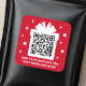 Business QR code stickers featuring your QR code on a white (or custom color) gift box silhouette surrounded by white ( or custom color) stars on a red background. Text, font and colors are customizable. Perfect for directing your customer to a gift or freebie.