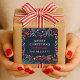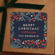 A festive square Christmas gift label featuring a decorative frame of seasonal berries, branches, and plants in classic greens and reds on a deep navy blue background. The elegant greeting reads “Merry Christmas with love from {name}” in a stylish mix of modern script and block typography. Printed in bulk rolls of 50 or more, these labels are perfect for adding a personal, polished touch to holiday gifts, packaging, and cards. The rich navy background paired with vibrant foliage creates a warm, sophisticated look that suits both traditional and modern holiday styles. A timeless and beautifully festive finishing touch for every present.