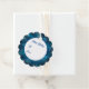 This Christmas gift tag is shown with a festive holiday blue snowflakes print.
