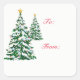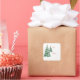 Christmas Holiday peel and stick gift tag shown in a festive Christmas trees print. Text to and from in Red. Great way to wish your gift recipient merry Christmas.