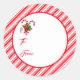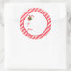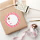 This Christmas gift tag sticker is shown with a festive holiday candy cane stripes print.