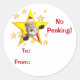 Funny Santa Claus design on peel-n-stick gift tags, with Santa saying "No peeking! "