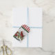 Christmas gift tags with a cardinal and pine boughs, red and white stripes and green band.