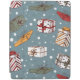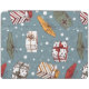 Various hand drawn Christmas gifts on blue background with falling snow. Seamless Christmas design.