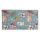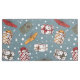 Various hand drawn Christmas gifts on blue background with falling snow. Seamless Christmas design.