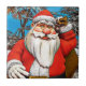 3D digital render of a Santa walking and carrying a sack with gifts in a winter forest, painting effect