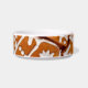 This is a heavy, durable bowl decorated with Tibbies of many colors, the perfect size for hungry/thirsty Tibs. The design is interesting and printing clear.
