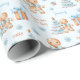 Christmas wrapping paper with a cute gingerbread man, Christmas tree, gifts and snowflakes for babies and little boys with the name and two other different texts, easily personalize them. The light blue background. - Kate Eden Art