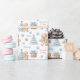 Christmas wrapping paper with a cute gingerbread man, Christmas tree, gifts and snowflakes for babies and little boys with the name and two other different texts, easily personalize them. The white background. - Kate Eden Art