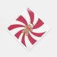 Cute gingerbread man with Santa Claus hat on red and white Christmas peppermint candy swirl design.