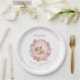 Christmas girl Baby Shower Paper Plates with a cute Christmas sleeping Deer and Gingerbread Cookies wreath in pink and beige. - Kate Eden Art