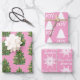 Christmas Girly Pink & White Pattern Wrapping Paper Sheets