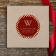 This elegant return address sticker features a burgundy red circle on a background pattern of burgundy and gold faux foil and glitter diagonal stripes. Personalize the design with your monogram initial and family name in gold serif font, with your address below in sans serif.