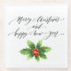 Holiday glass coaster set is shown with a festive Christmas holly print.