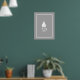 Simple sleek modern Christmas holiday gnome. Scandi design Christmas tree hat holding gift. Decorations home decor. Add your family name or holiday message. Grey and white design. Minimalist style. Fine line art.