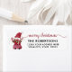 "Christmas Gnome Watercolor Joy Script Typography Return Address Label." Adorable hand painted watercolor gnome holds a "JOY" typography lettered banner along with a red script "Merry Christmas" message. Your contact information is easily personalized using the template fields. Art by internationally renowned and licensed artist, Audrey Jeanne Roberts, copyright.