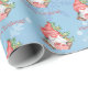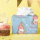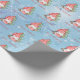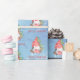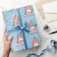 Christmas Gnome with Presents Tree Personalized Gift Wrapping Supplies. This fun watercolor Scandinavian gnome holding a present and sitting in front of a Christmas tree, is a festive way to wrap your holiday presents this year. The text can be personalized and the design is on a blue snowflake background.