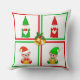 Christmas gnomes & elves on white, green & red throw pillow
