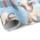 Adorable little goat adorns this gift wrap with gifts of her own - a blue theme, she stands among wrapped presents with snowflakes