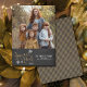 This single photo family Christmas card will make your holiday mailing a snap this year. Joyeux Noel in a stylish faux gold glitter script calligraphy is adorned with pretty snowflakes. A simple signature that includes your family name, each family members name and the year make this a lovely keepsake of the current holiday season. The back has a festive faux gold glitter ticking stripes.