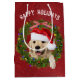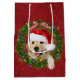 Christmas Golden Retriever on red Medium Gift Bag