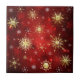Christmas Golden Snowflakes on Red Background Ceramic Tile