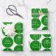 A Merry Christmas wrapping paper sheet set with a green circle pattern and custom family name. Customize the 'Merry Christmas' and the 'Family Name' texts in an easy way.