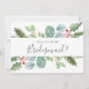 This Christmas greenery will you be my bridesmaid card is perfect for a December wedding. The winter holiday design features soft sage green watercolor eucalyptus and modern botanicals with sprigs of classic red holly berries. Customize the card with the name of the bride and the bridesmaid. Personalize the back of the card with a personalized message.