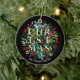 Christmas Greens and Berries on Black Ceramic Ornament