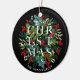 The word Christmas among winter leaves and berries are featured on these Christmas tree ornaments personalized greeting with your family name or business name. MATCHING items in our collection.