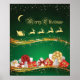 Beautiful Christmas greeting with Santa Clause flying in his sleigh in magical night with loads of Christmas gifts. Perfect Christmas gift for your loved ones. A beautiful addition to your holiday decor.