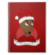 Personalized design with an illustration of happy smiling African American man with Santa Claus' hat; with editable text template, Christmas holidays design with a red background, by Radka Kavalcova