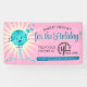 Cute jumping ball of yarn with crochet hook on this Christmas holiday craft show banner for crochet projects, homespun yarn or other comfy crafts, personalized with your text and logo, plus your choice of color scheme.